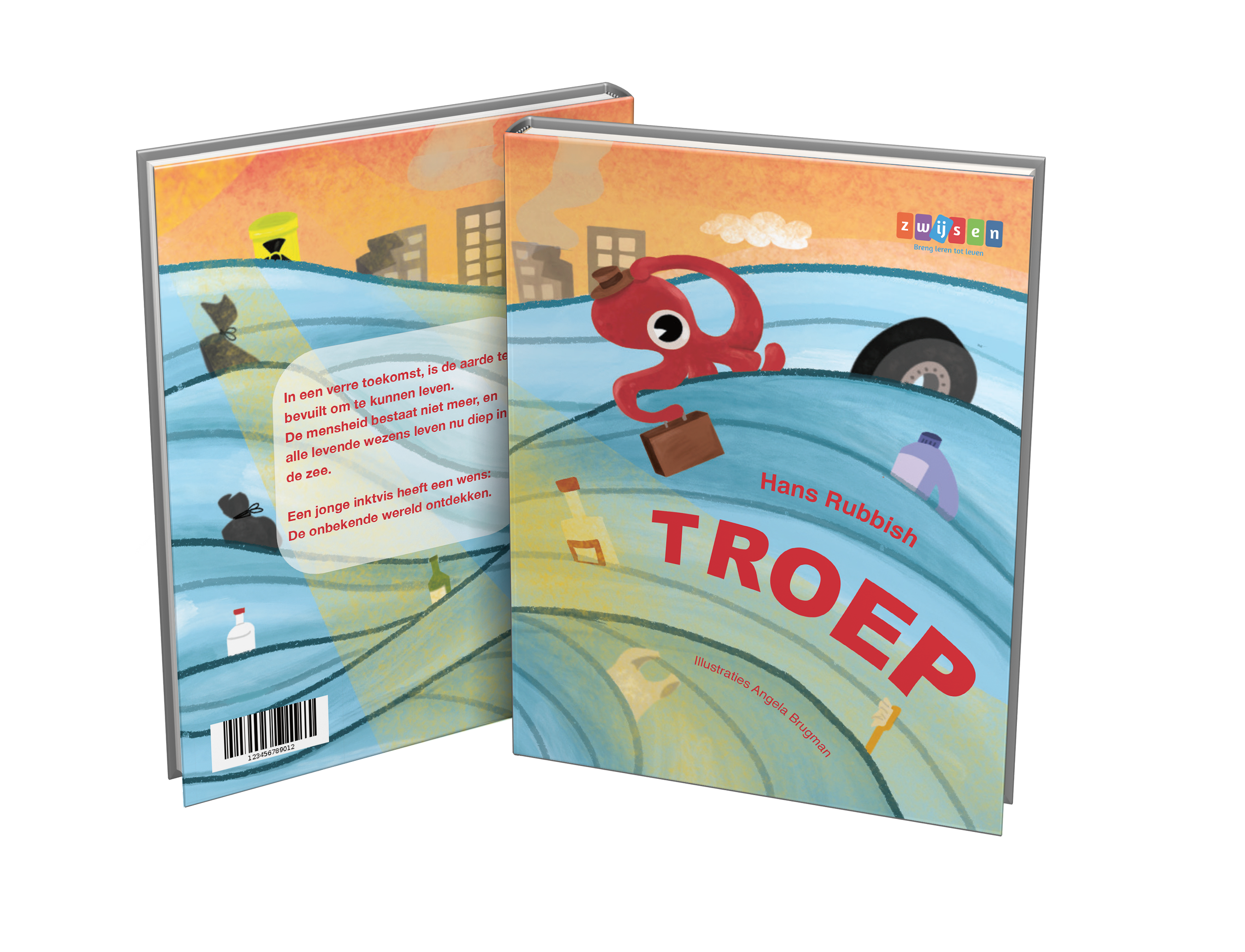 For an school project I designed and illustrated an bookcover for a fictive story. It’s about a world where humans don’t exist anymore, and creatures live among the trash created by humans. The target group was children between 10-12 year old.